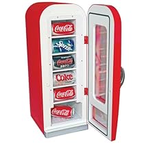 - Retro-style Coca-Cola fridge holds up to 10 12-ounce cans
